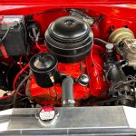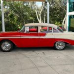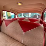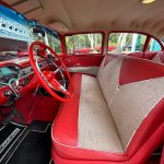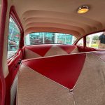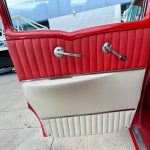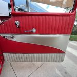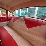 Stepping inside, you’ll be greeted by the same red and ivory color scheme that continues into the interior. The upholstery reflects the era’s design sensibilities with its classic patterns and textures, creating a nostalgic atmosphere that takes you back in time. The spaciousness of the 4-door configuration ensures comfortable journeys, allowing you to bring along family or friends to share in the joy of cruising in this vintage gem.
