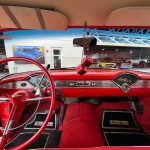 The exterior of this 1956 Chevrolet Bel Air showcases a stunning two-tone color combination of red and ivory. The vibrant red paint exudes a vibrant energy, while the ivory accents add a touch of sophistication and contrast. This timeless color scheme perfectly complements the car’s sleek lines and chrome accents, making it an attention-grabbing sight wherever it goes.