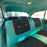 The aqua exterior finish of this Chevrolet Bel Air is nothing short of mesmerizing. It shines brilliantly under the sun, accentuating the car’s sleek lines and iconic design elements. The aqua color evokes a sense of nostalgia, reminiscent of a bygone era when cars were built with character and style.