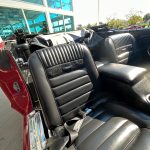 Inside, the Mustang Convertible offers a tastefully designed black interior, creating a refined and sophisticated ambiance. Sink into the plush seats and feel the comfort they provide, ensuring an enjoyable driving experience even on long trips. The well-appointed cabin reflects the attention to detail synonymous with this era, with touches of chrome and classic gauges that hark back to the golden age of American muscle cars.