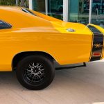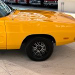 The exterior of this 1969 Dodge Charger boasts a vibrant yellow color, capturing attention wherever it goes. This bold choice perfectly complements the car’s aggressive lines and muscular physique, further emphasizing its timeless appeal. The iconic Charger grille, sleek body contours, and distinct taillights create an aesthetic that is both instantly recognizable and undeniably attractive.