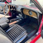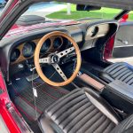 This particular Mustang Mach 1 is adorned in a striking Cherry Red exterior, which not only catches the eye but also pays homage to the vibrant spirit of the 1970s. The bold and commanding presence of this color further accentuates the car’s muscular body and iconic design, making it a true head-turner on any road.